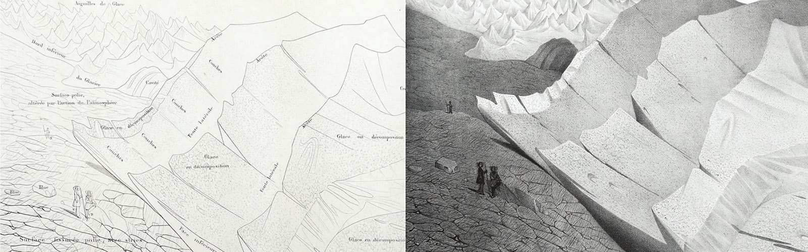 In his revolutionary Études sur les glaciers (1840), Agassiz demonstrated the effects of glacial ice on the landscape of the Alps, thus challenging the legitimacy of the Great Flood myth